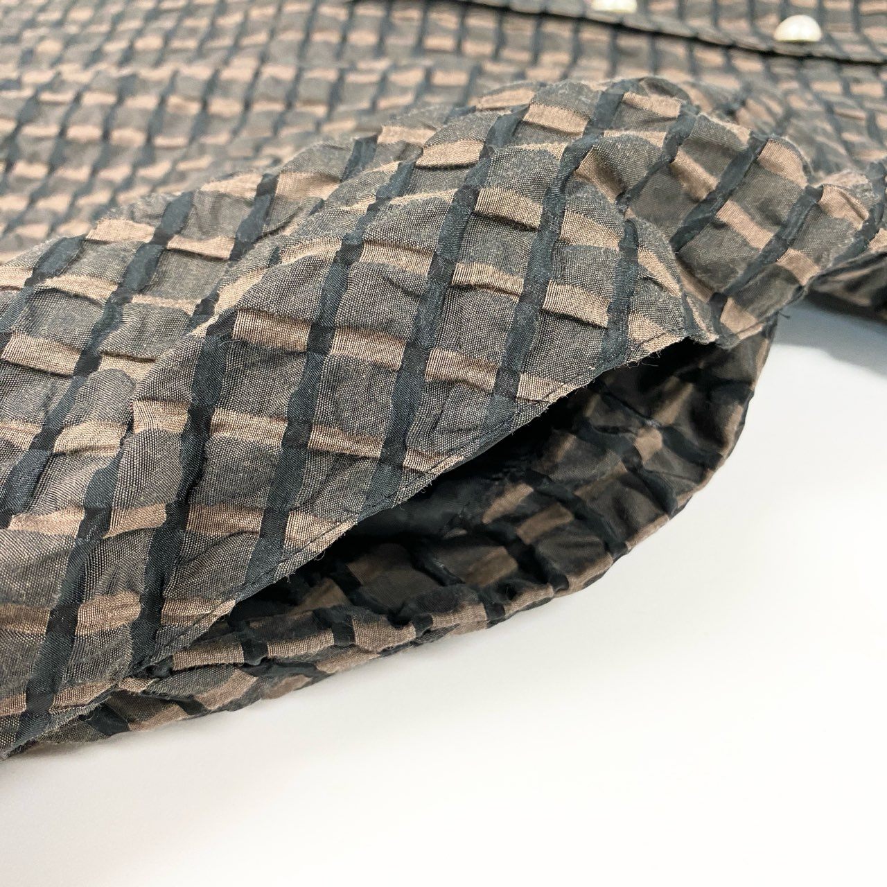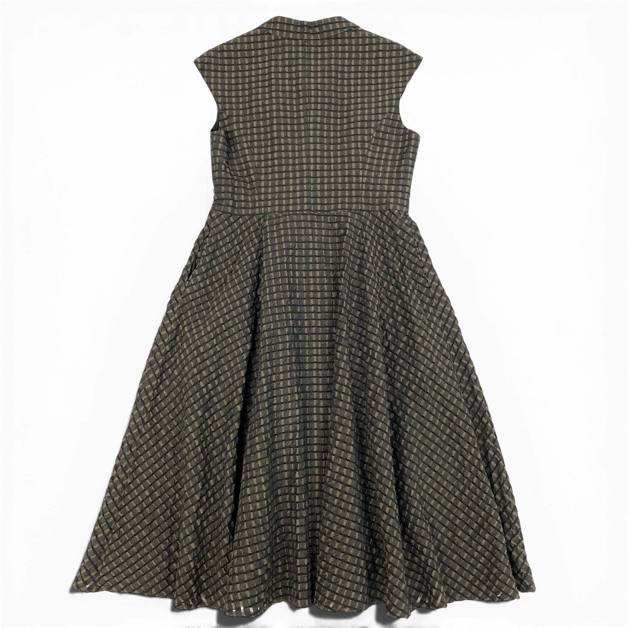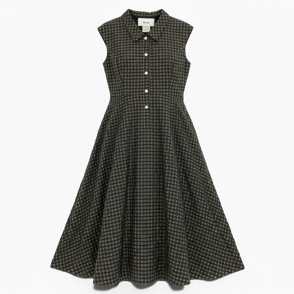 落ち着いたチャコールグレー系をベースにした細かなチェック柄が上品なルネのノースリーブワンピースです。