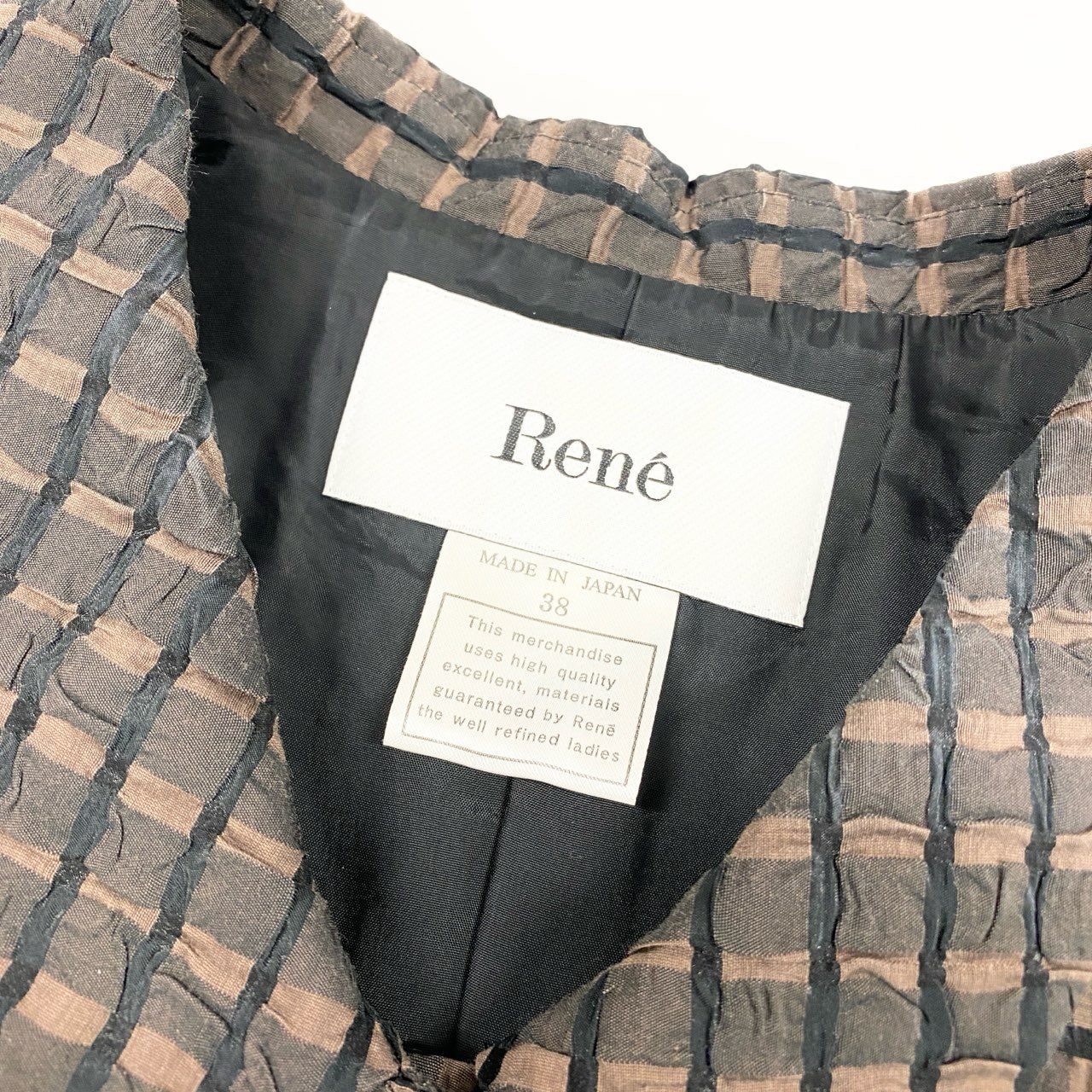 14a28 Rene ルネ ノースリーブワンピース ノースリーブワンピース Aライン 襟付き パールボタン 38 ブラウン レディース 女性用u02t