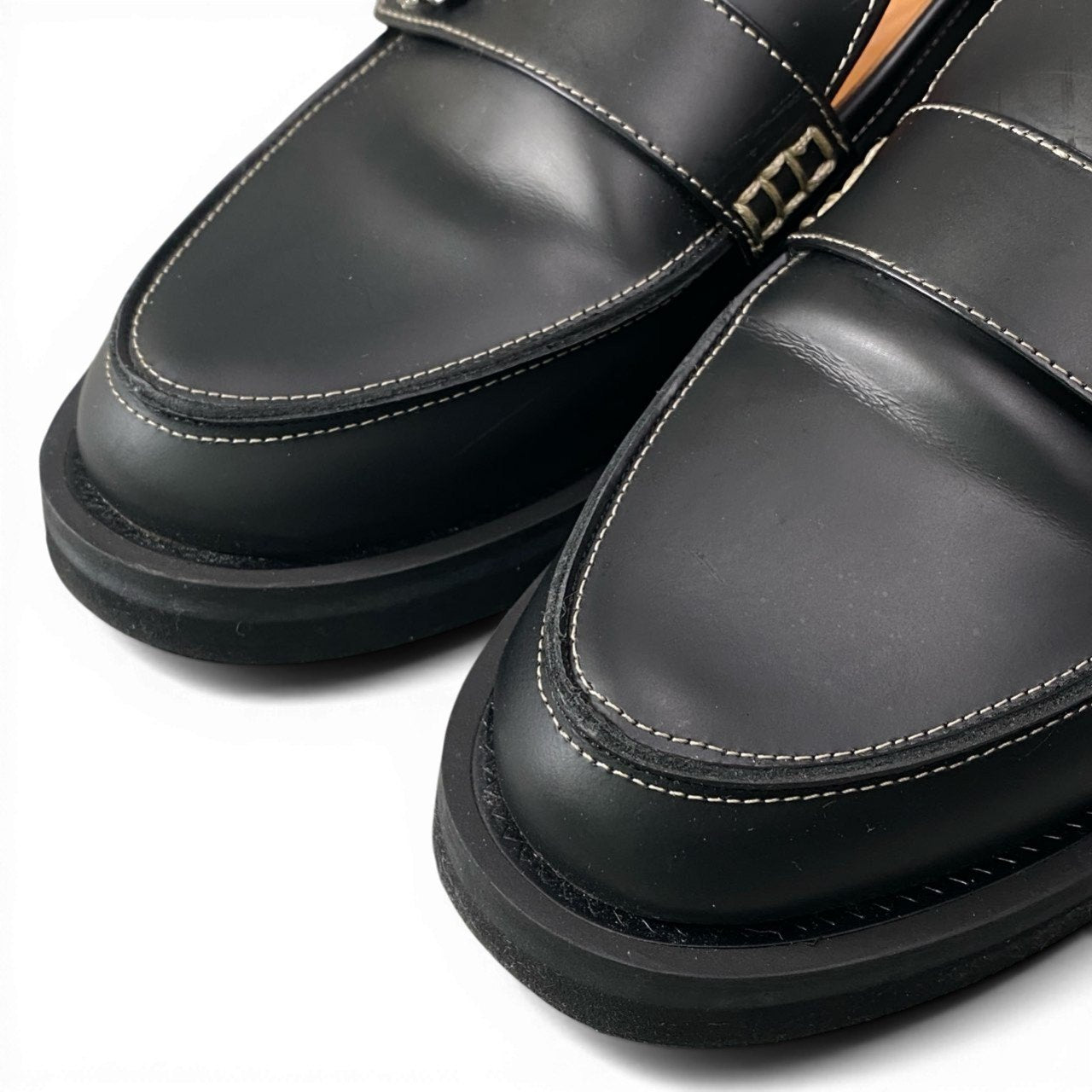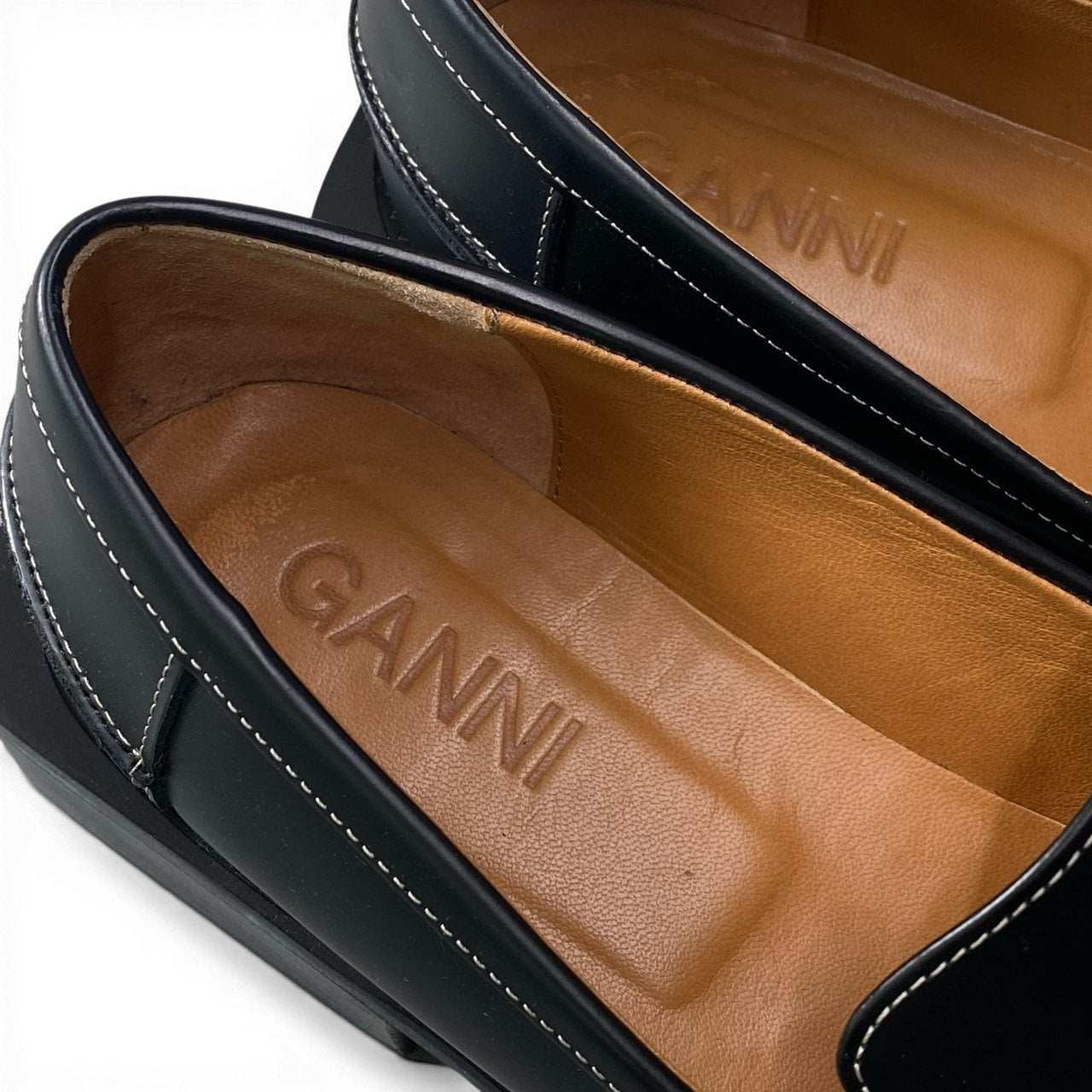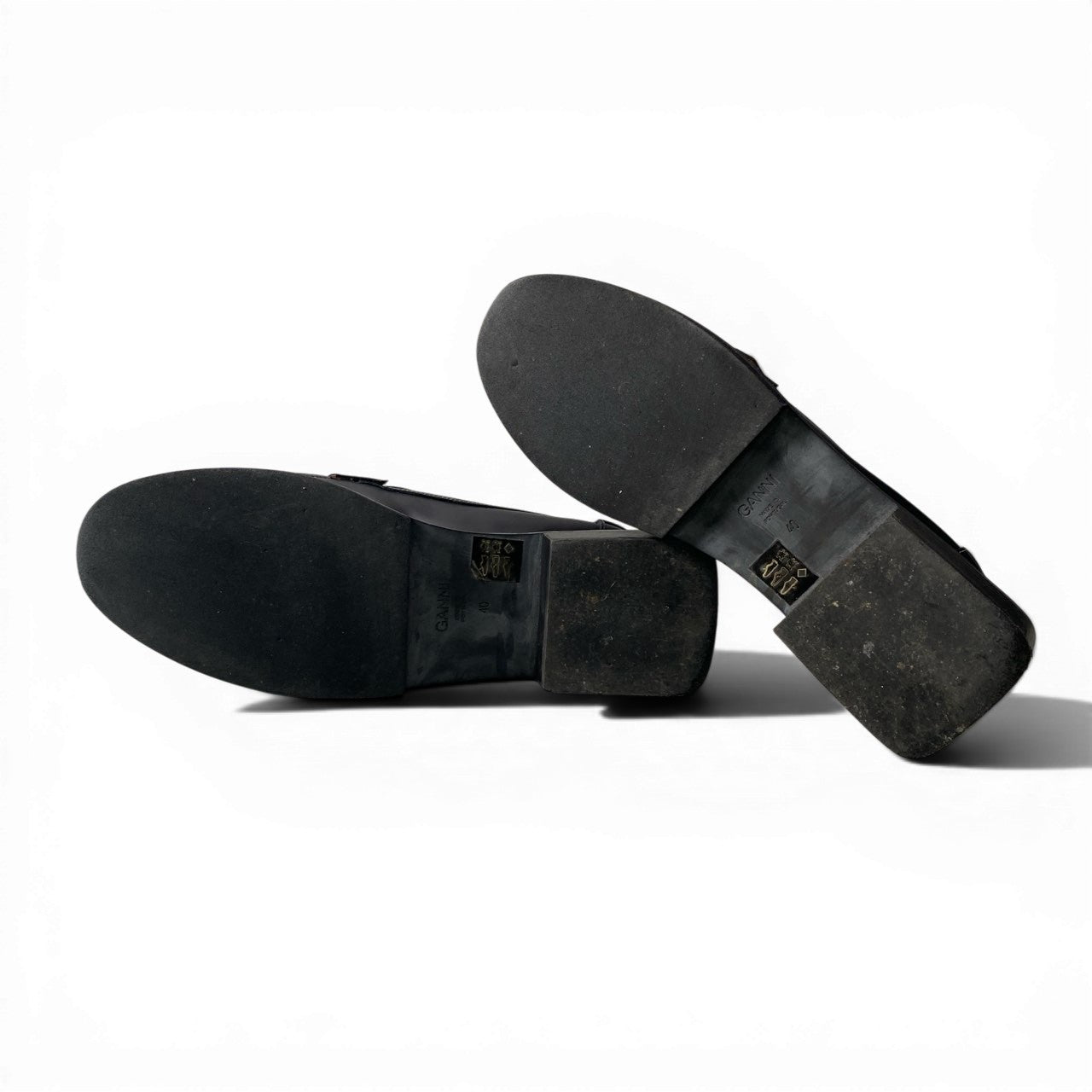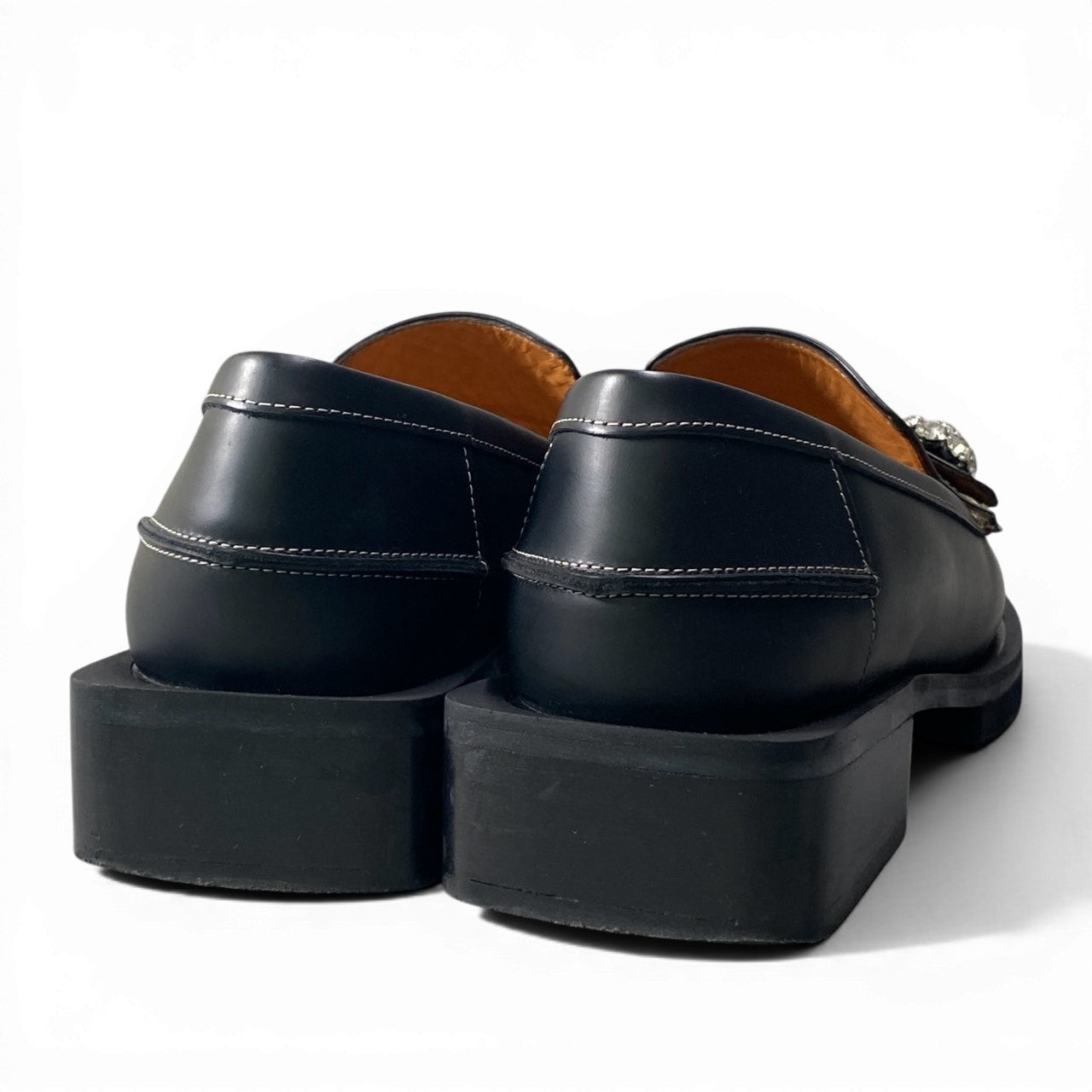 1c23 GANNI ガニ― クリスタルボタン付き レザーローファー ビジュー 革靴 フラットシューズ レディース 女性用 40 ブラックu02t