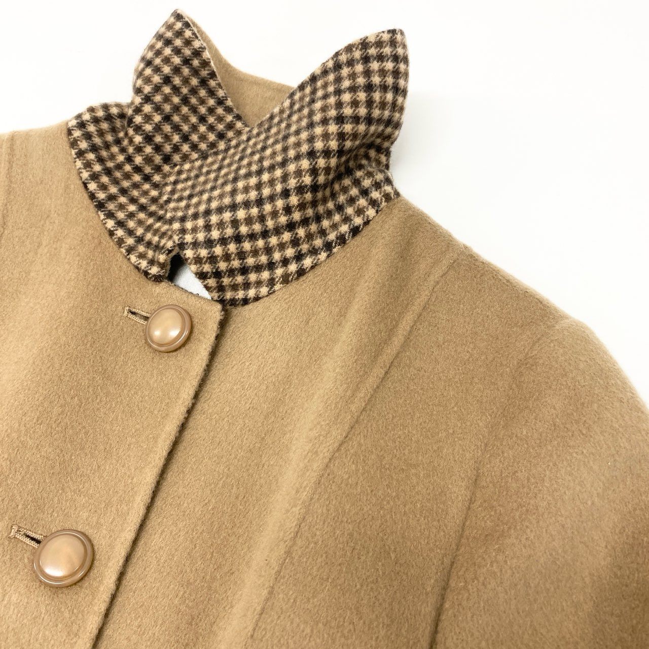 79k21 近年 Leilian レリアン ステンカラーコート カシミヤコート 切替チェック柄 レディース 女性用 9 ベージュ カシミア100%u02t