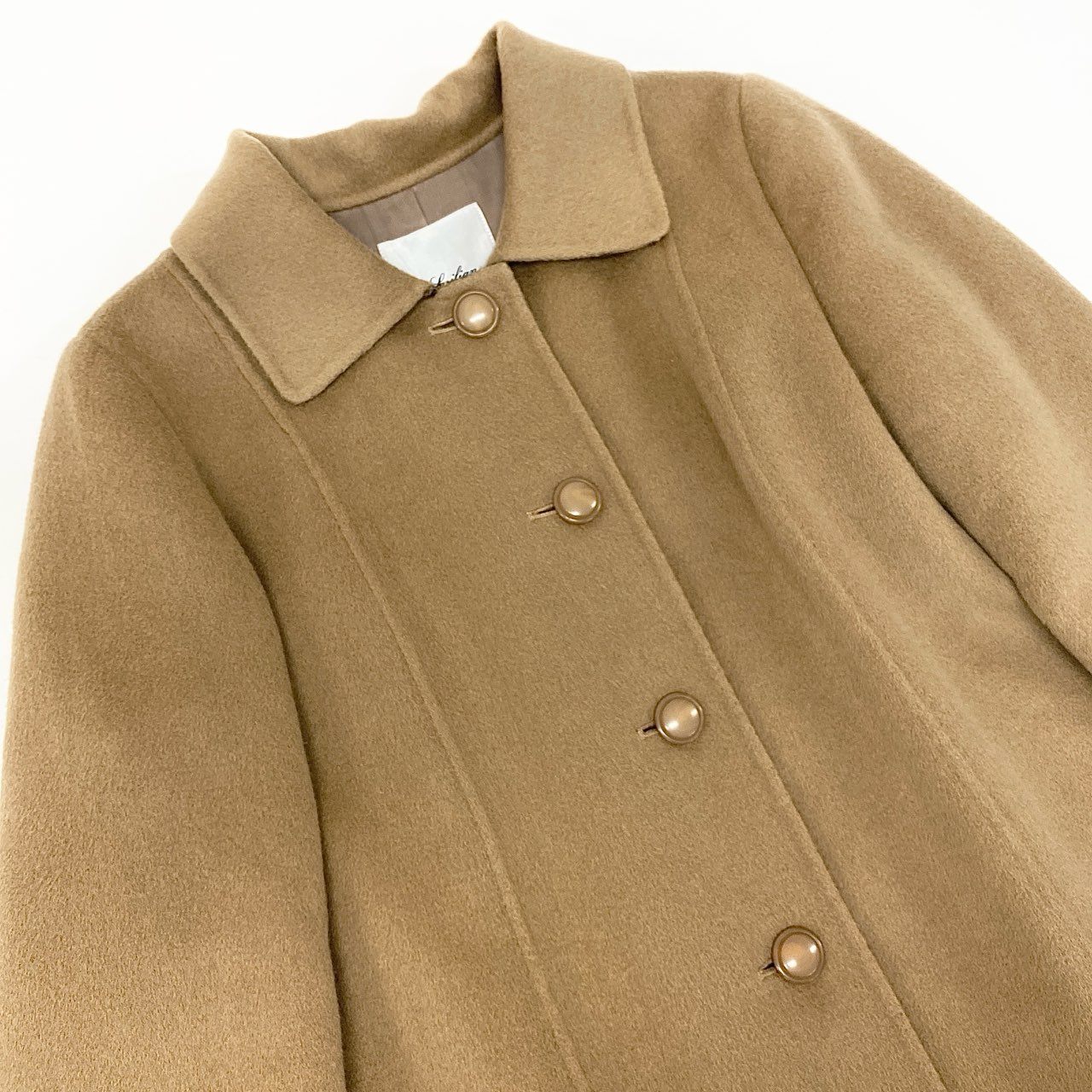 レリアンの上質なカシミヤ100%を使用した、柔らかく暖かいステンカラーコートです。落ち着いたキャメルベージュに、切替部分のさりげないチェック柄がクラシックで上品な印象をプラス。軽やかな着心地ながらしっかり防寒でき、通勤からお出かけシーンまで幅広く活躍します。ボタンは丸みのあるシンプルデザインで、長く愛用できるタイムレスな一着です。