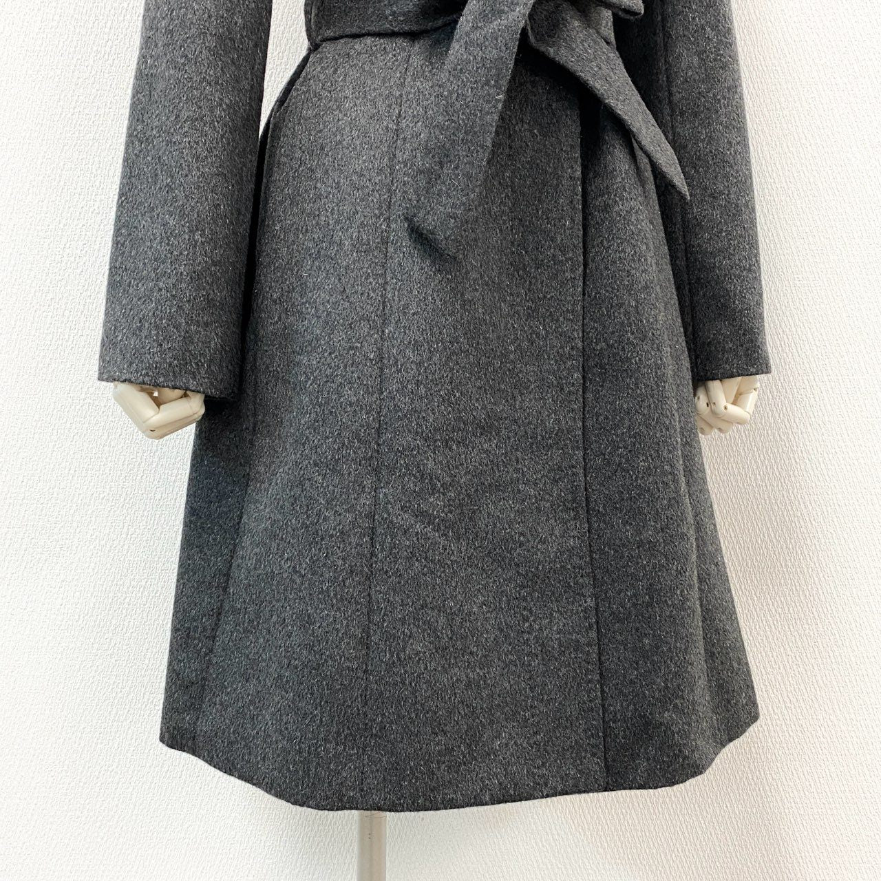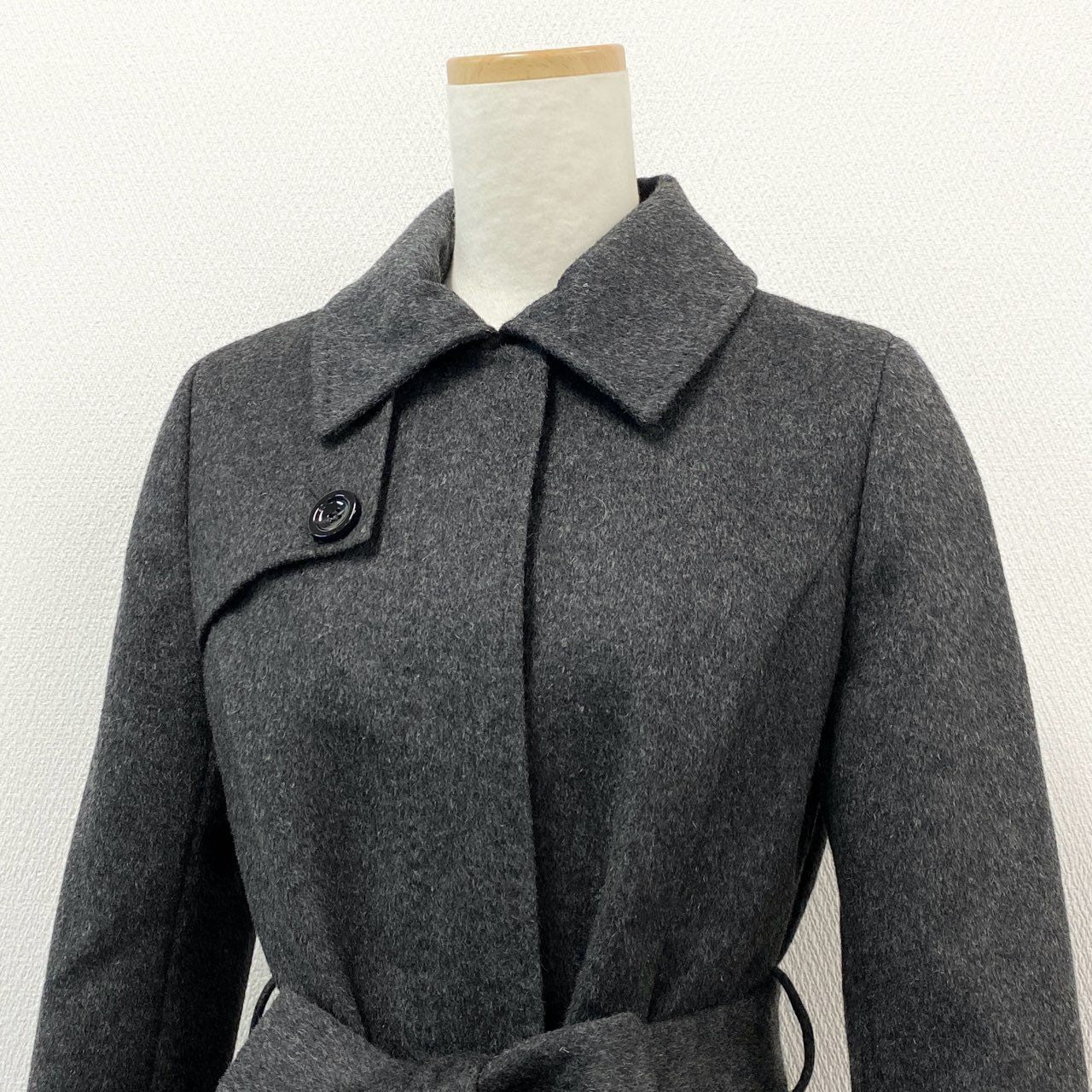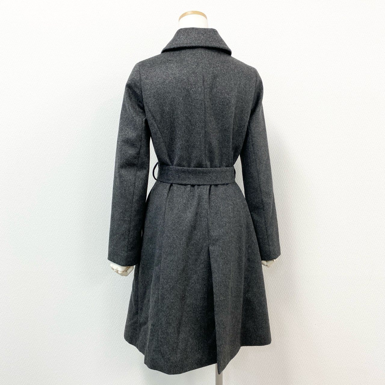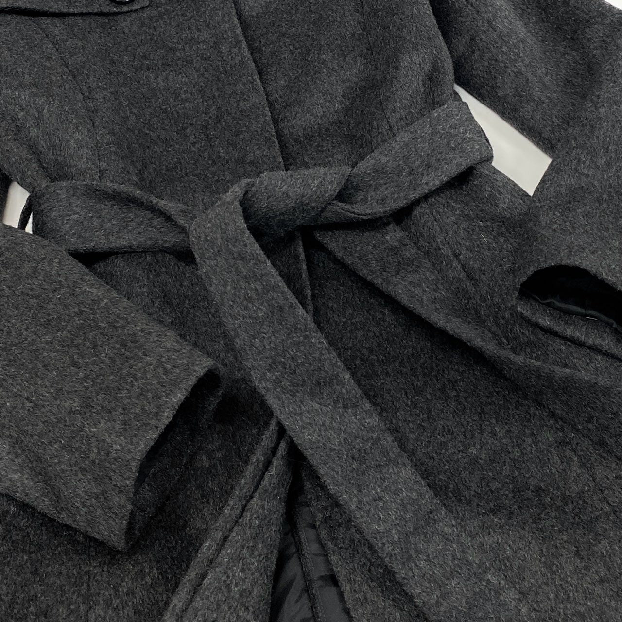 58f20 BARNEYS NEWYORK バーニーズニューヨーク 総カシミヤ ベルテッドステンカラーコート ロングコート 38 グレー Pure Cashmere カシミヤ100 カシミア レディース