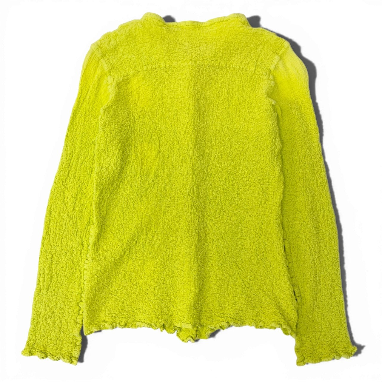 78b5 ISSEY MIYAKE me イッセイミヤケ ミー カリフラワーカーディガン ノーカラージャケット シワ加工 MI82FO759 イエローグリーン レディース 女性用u02t