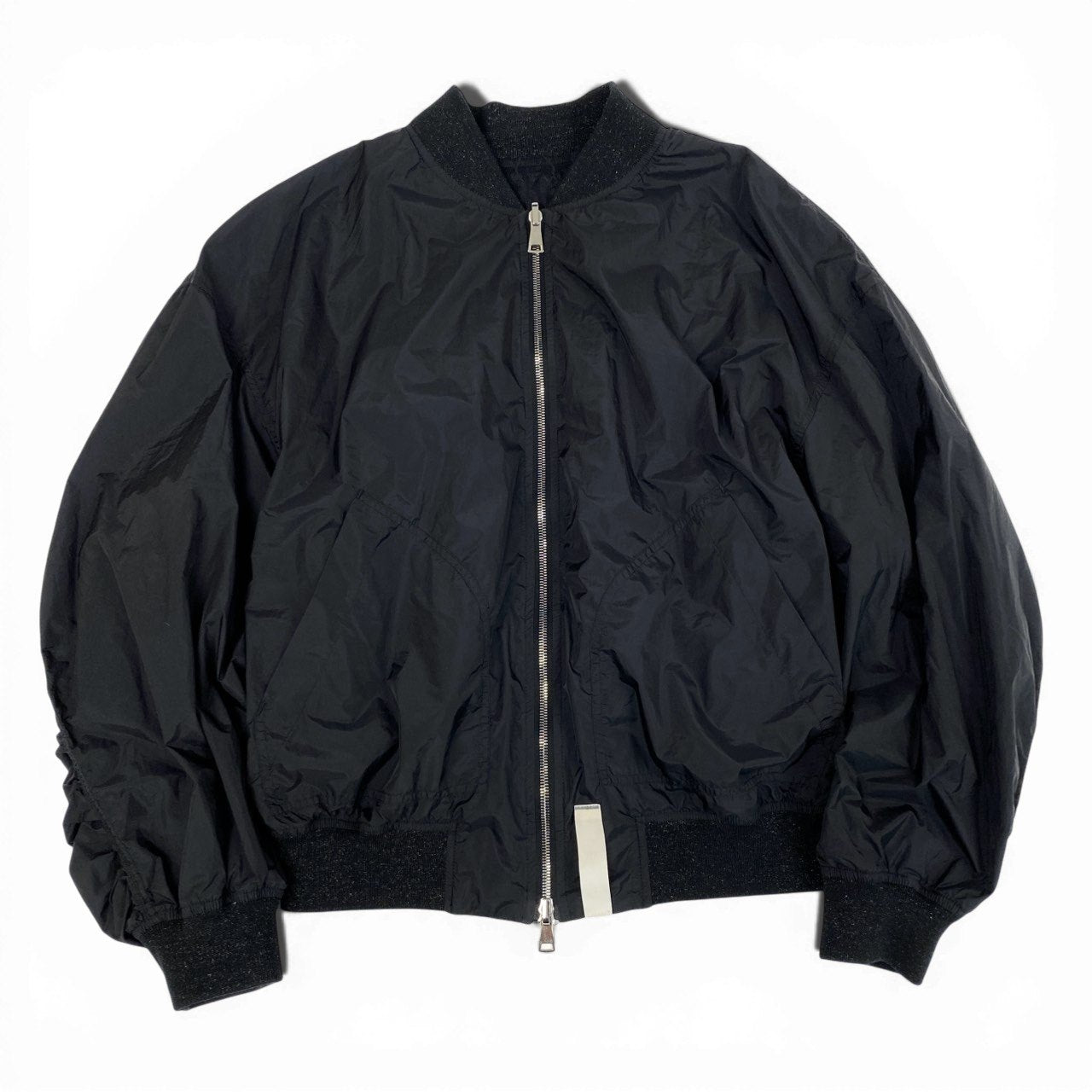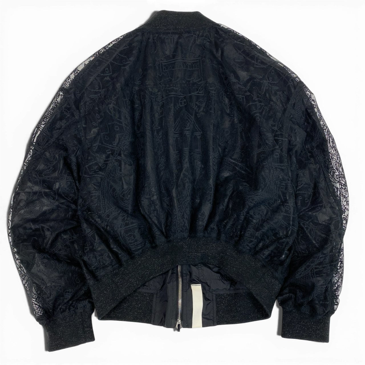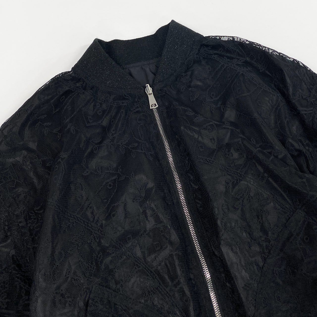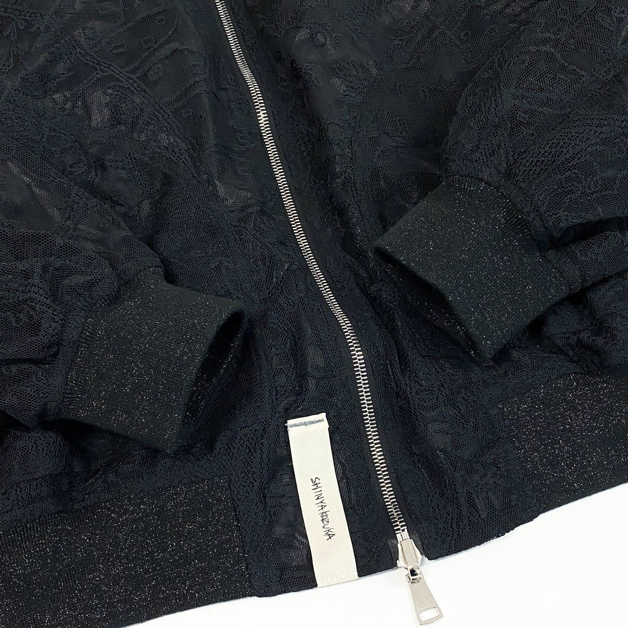 繊細なフラワーレースパターンを重ねたリバーシブルボンバージャケットです。 透け感のあるレース素材と光沢のあるリブ仕様が、モードで上品な雰囲気を演出。 フロントはメタルジップ仕様で、ストリートとドレッシーさを融合したデザインです。 シンヤコズカらしい構築的オーバーシルエットで、コーディネートの主役になる一着です。
