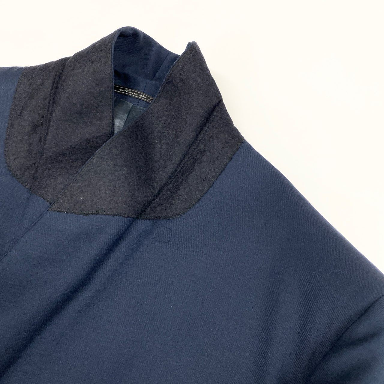 ジャケット実寸は着丈77.5cmでヒップがしっかり隠れる丈感となり、全体的にゆとりのあるクラシックなバランスです。
