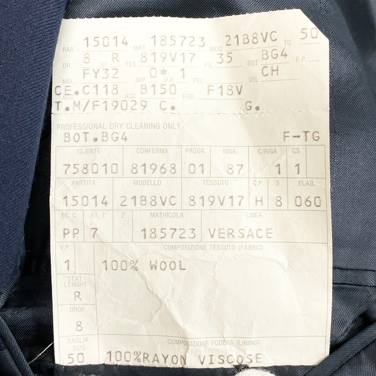 37a19 【美品】 GIANNI VERSACE ジャンニ ヴェルサーチ セットアップスーツ ダブルブレスト フォーマル テーラードジャケット タックパンツ イタリア製 メンズ 紳士服 サイズ50 ネイビー ウール100%u02t