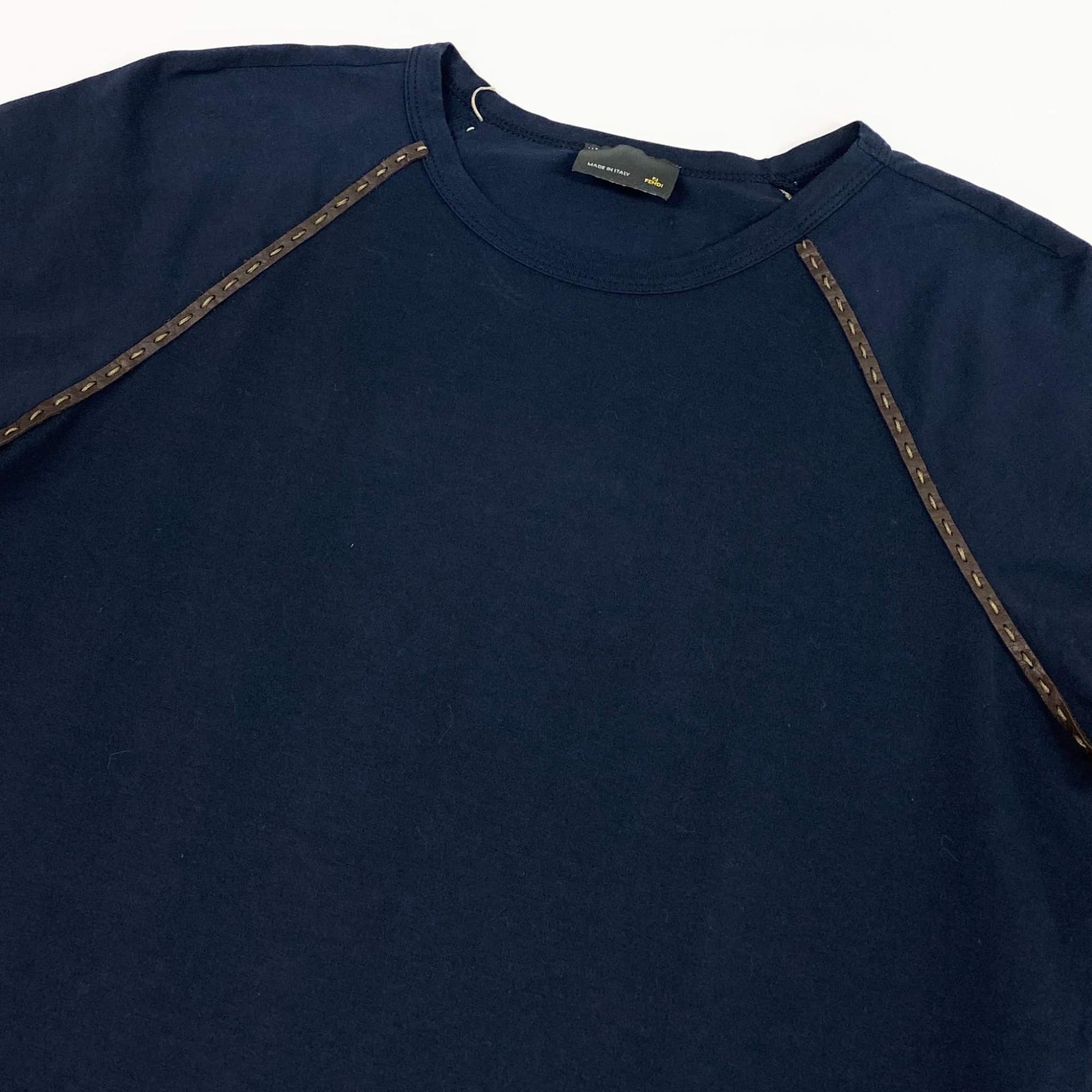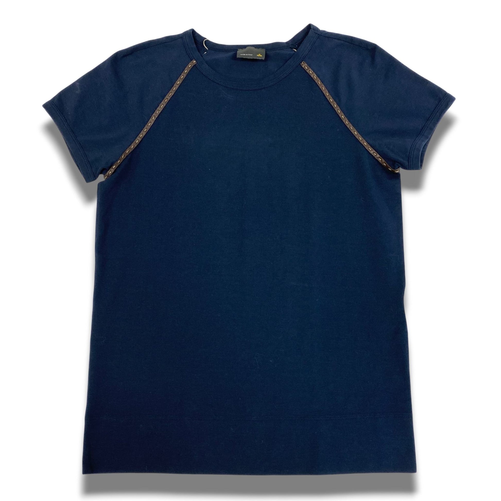 Eb20 FENDI フェンディ レザーパイピング 半袖Tシャツ カットソー 42 ネイビー レディースu02t