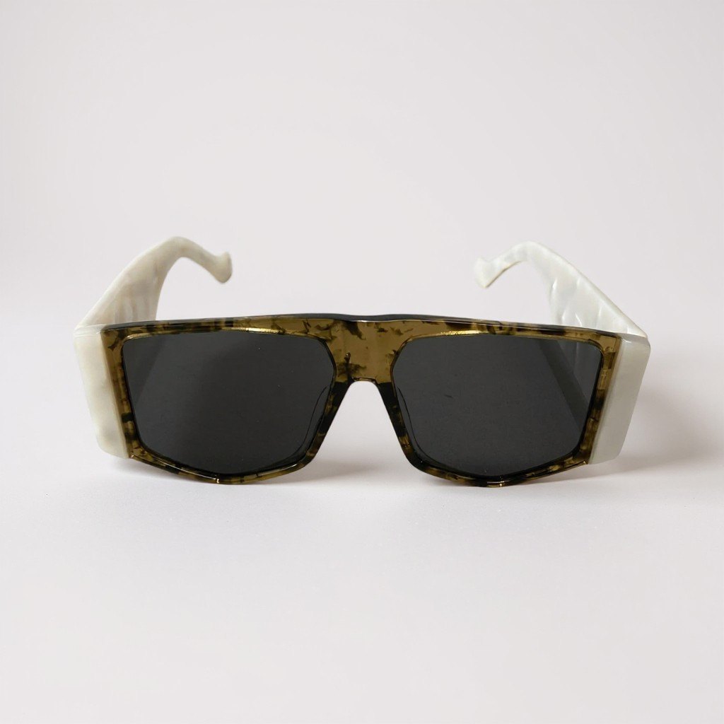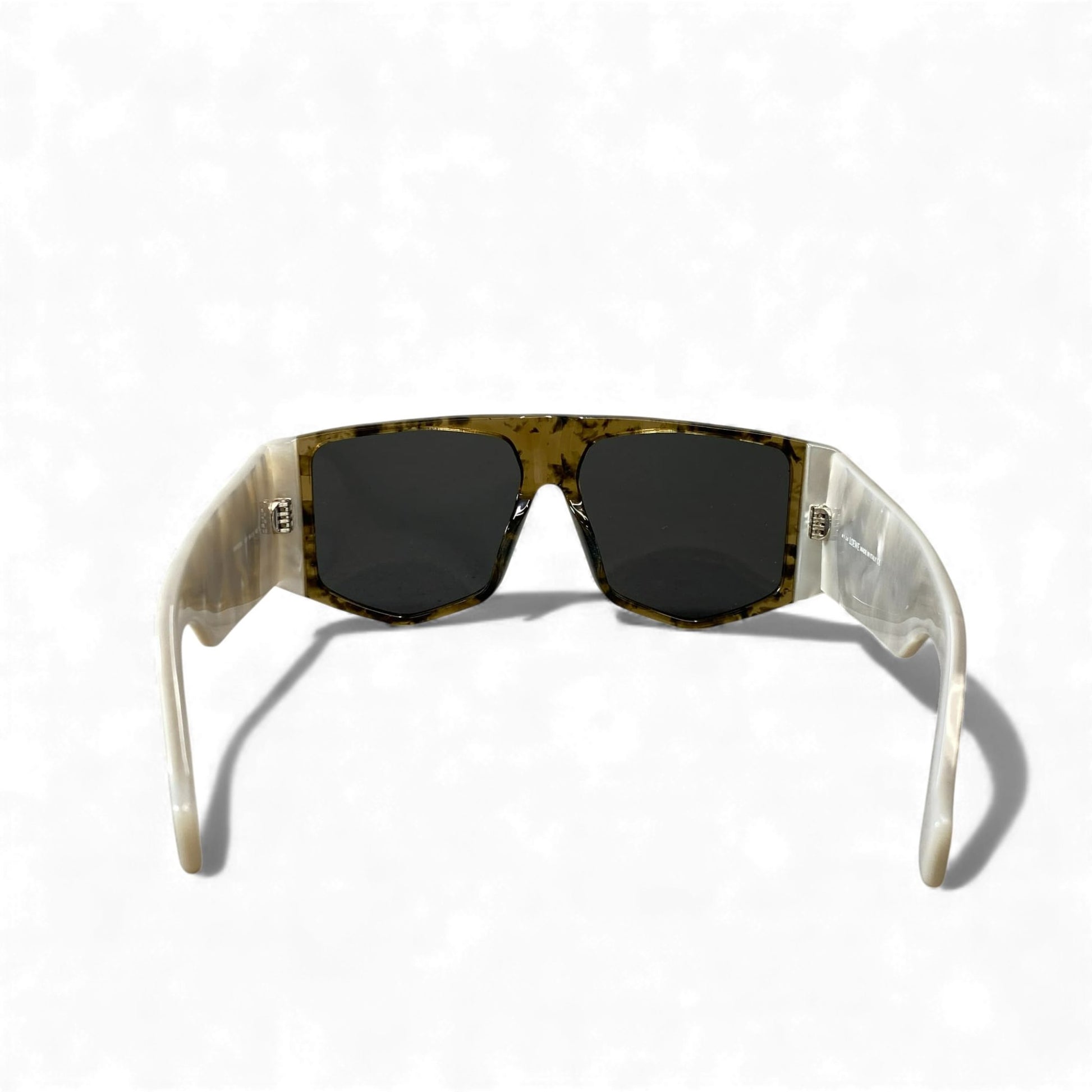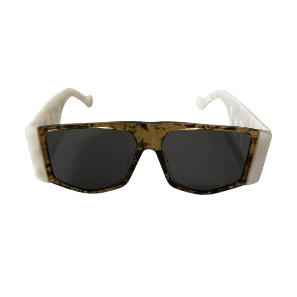 クリアブラウンのフロントとマーブル調ホワイトのテンプルを組み合わせた、ロエベ LW40026U のバイカラーサングラスです。立体的で厚みのあるアセテートフレームが存在感を放ち、ダークレンズがモード感を引き締めます。ワイドなスクエアシェイプが顔まわりをシャープに見せ、スタイリングのアクセントとして抜群のインパクトを発揮。日差しの強いシーンやドライブにも適した遮光性を備え、デザイン性と機能性を兼ね備えた一本です。