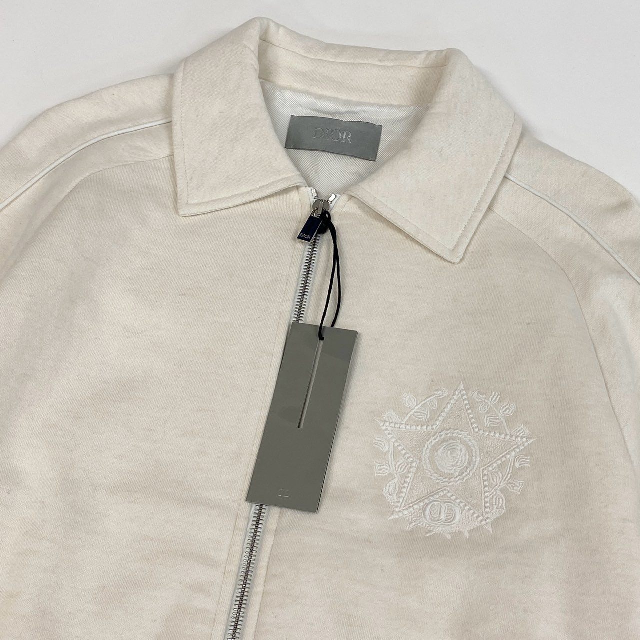 20a14 【タグ付】 Dior ディオール ダブルジップ コットンジャケット ブルゾン 胸元刺繍 メンズ 紳士服 243J432A0802 M オフホワイト系o07t