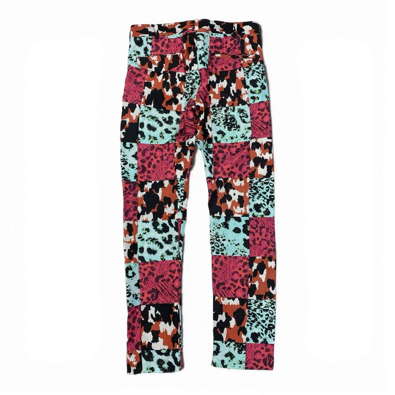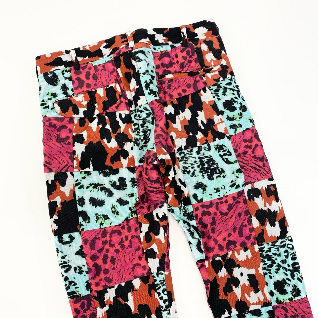 コムデギャルソンオムプリュスらしい個性が際立つパンツで、マルチカラー配色のクレイジーパターンが印象的です。 レオパード調や抽象柄を組み合わせたパッチワーク風デザインで、一本でスタイリングの主役になります。 マットな質感の生地感で、日本製ならではの丁寧な仕立ても魅力です。 シンプルなトップスと合わせることで、モード感のあるコーディネートを楽しめる存在感のある一着です。