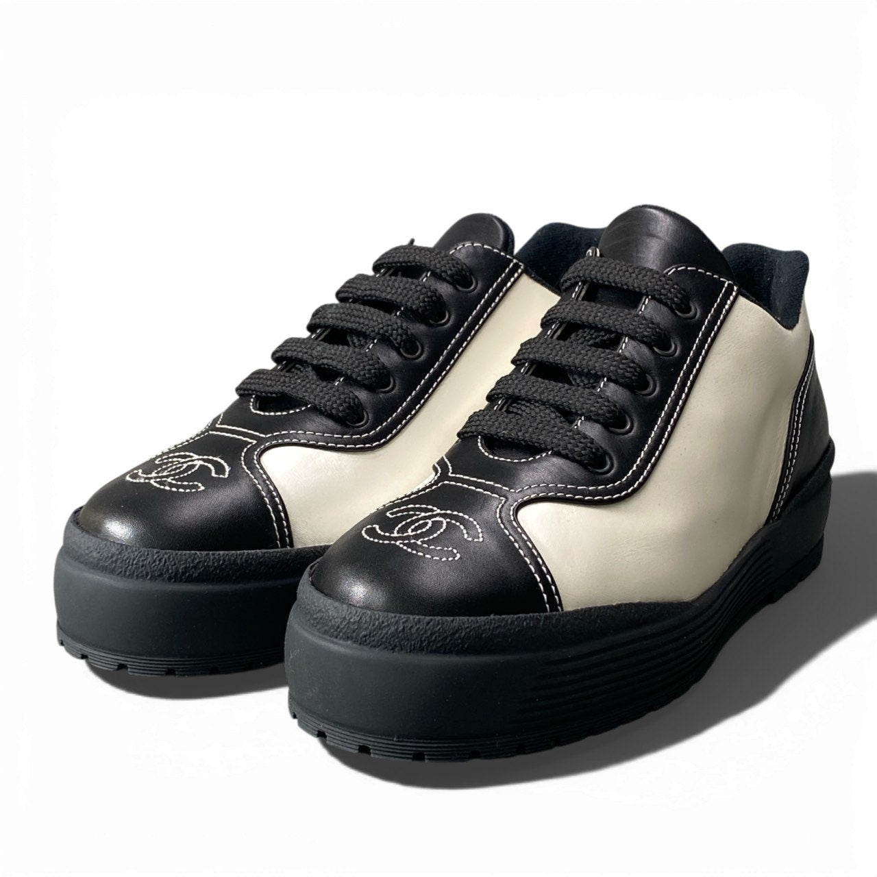 c4 CHANEL シャネル Vintage ココマーク スニーカー ローカット シューズ 37 ブラック ホワイト レディースta2