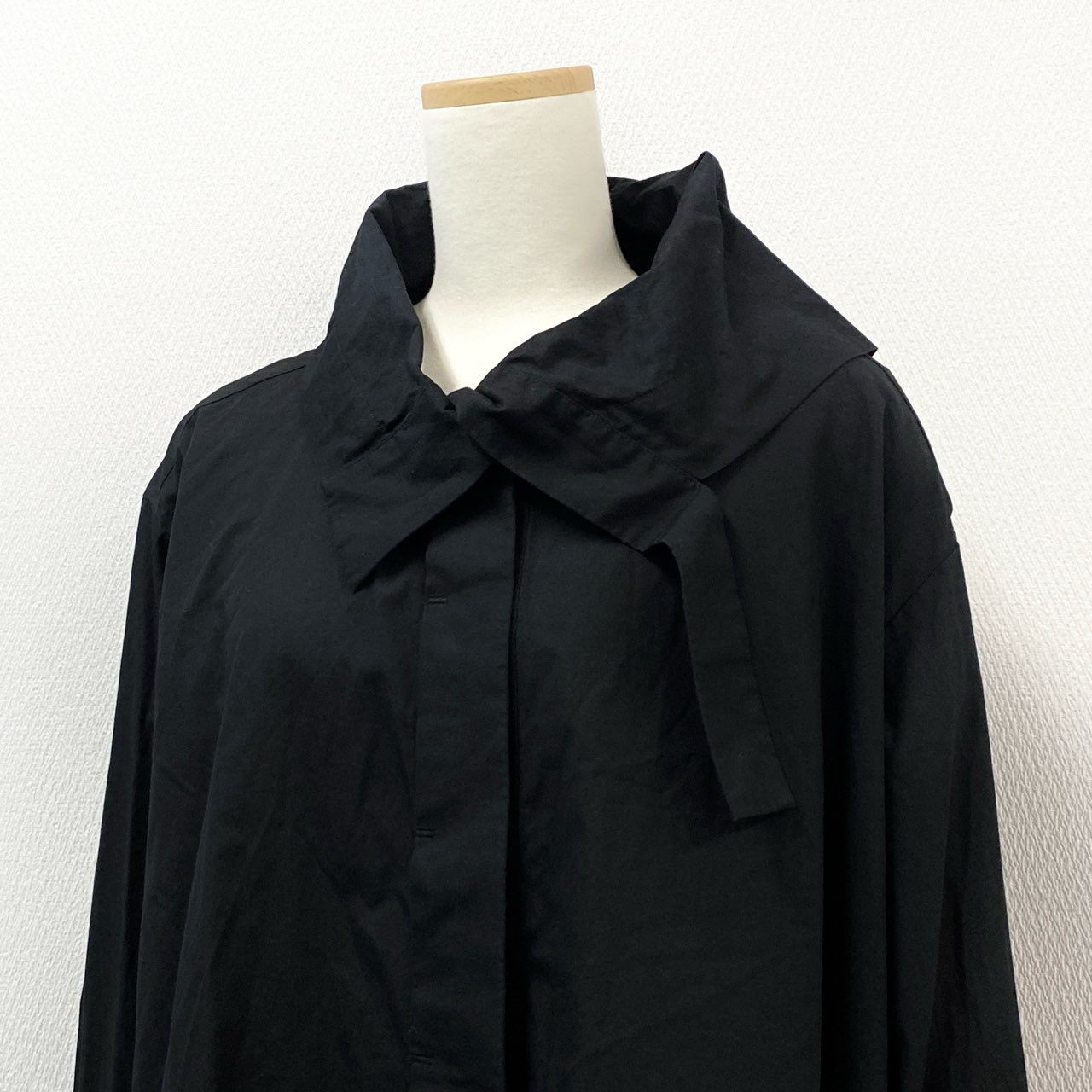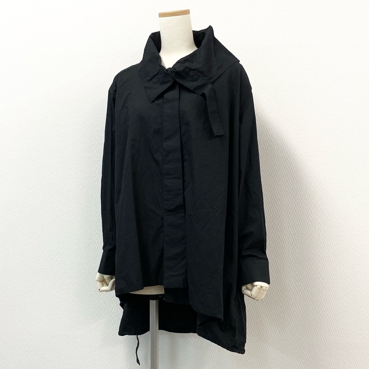 31i8 萌 MOYURU モユル アシンメトリーデザイン 長袖チュニックシャツ Aライン M-Lサイズ ブラック コットン レディースo07t