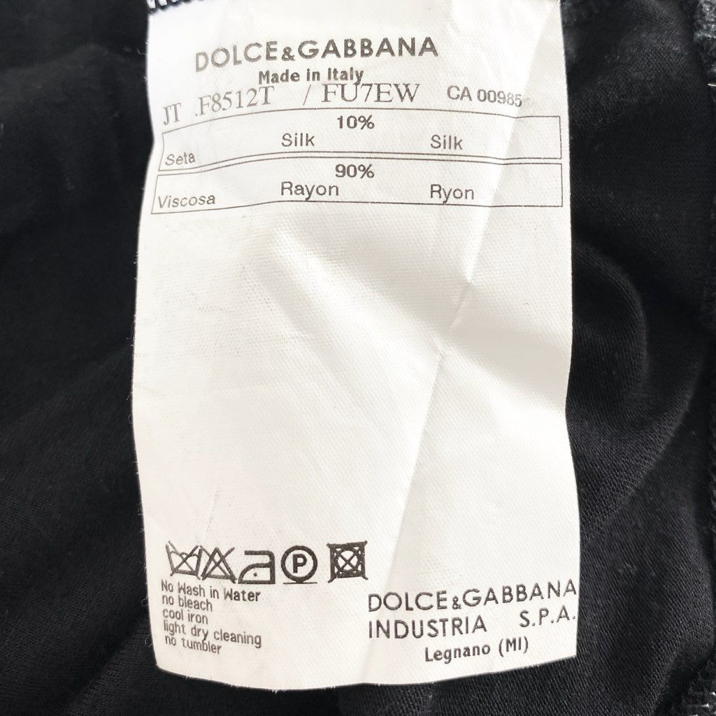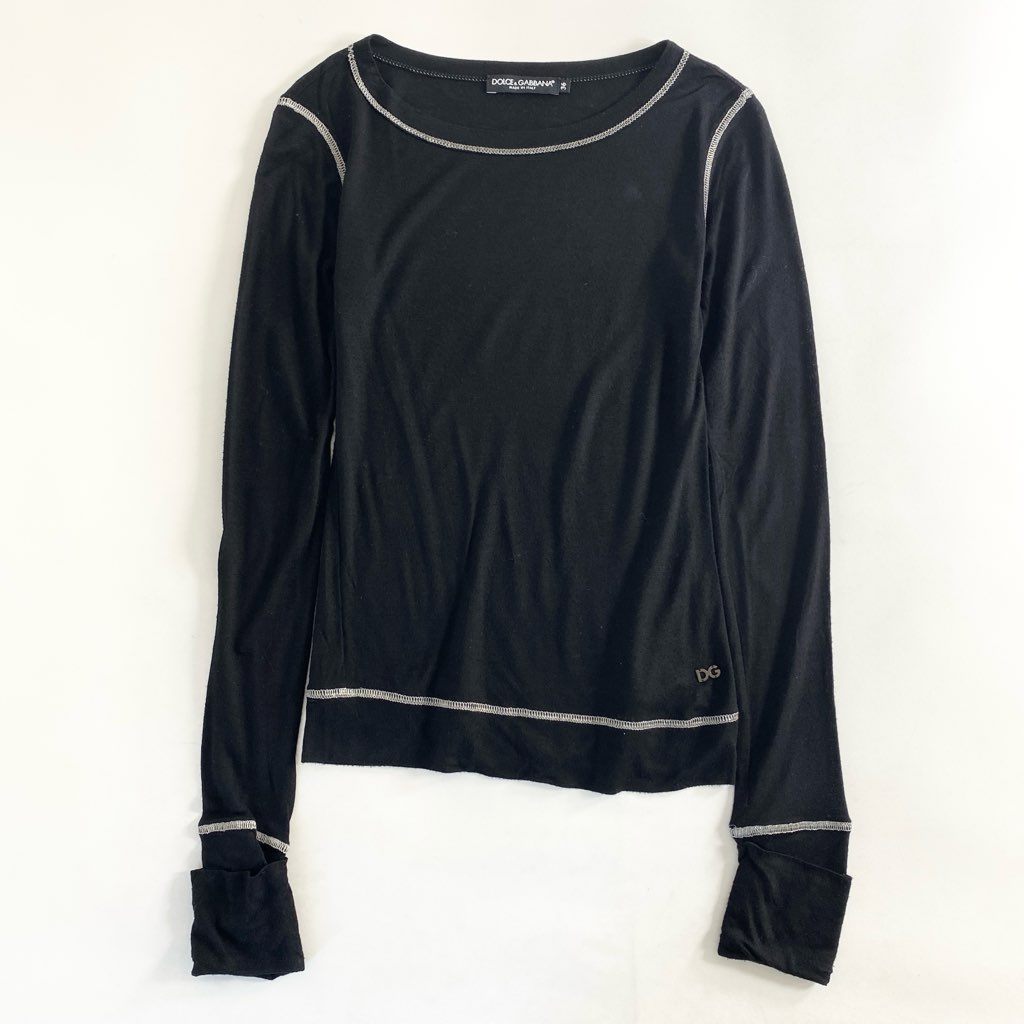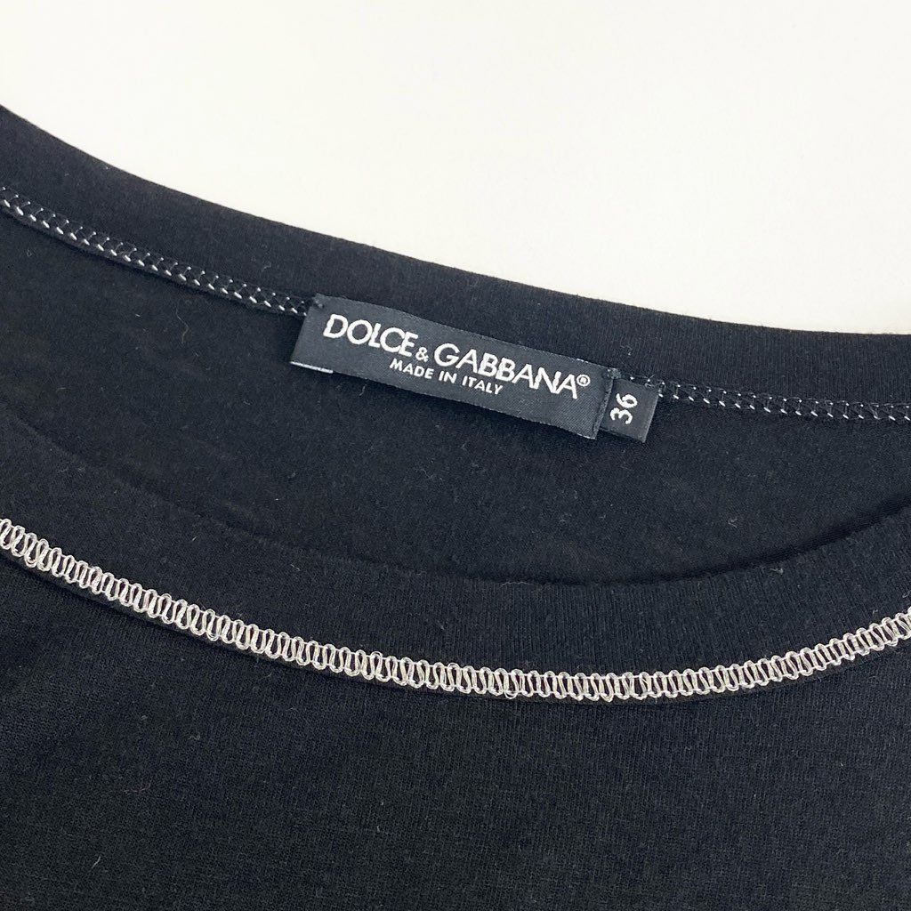 12d5 DOLCE&GABBANA ドルチェアンドガッバーナ イタリア製 ロゴプレート 長袖Tシャツ ロングスリーブカットソー 36 ブラック レーヨン シルク