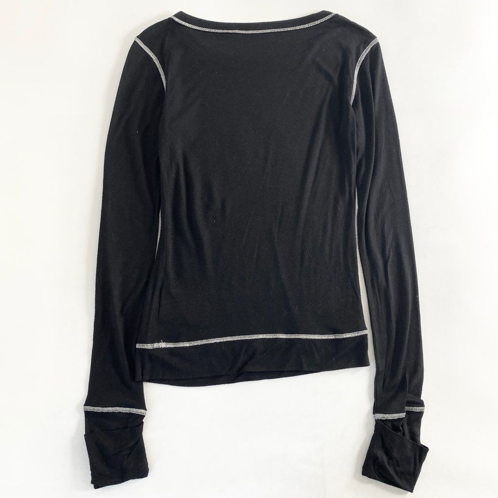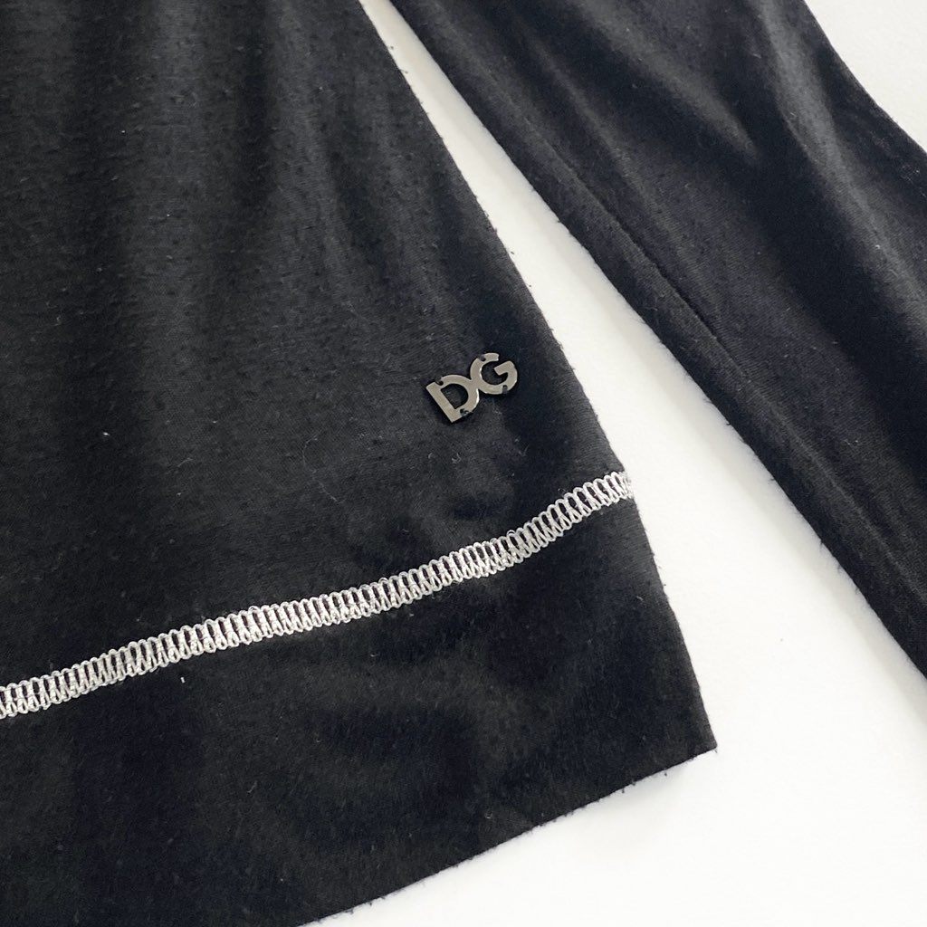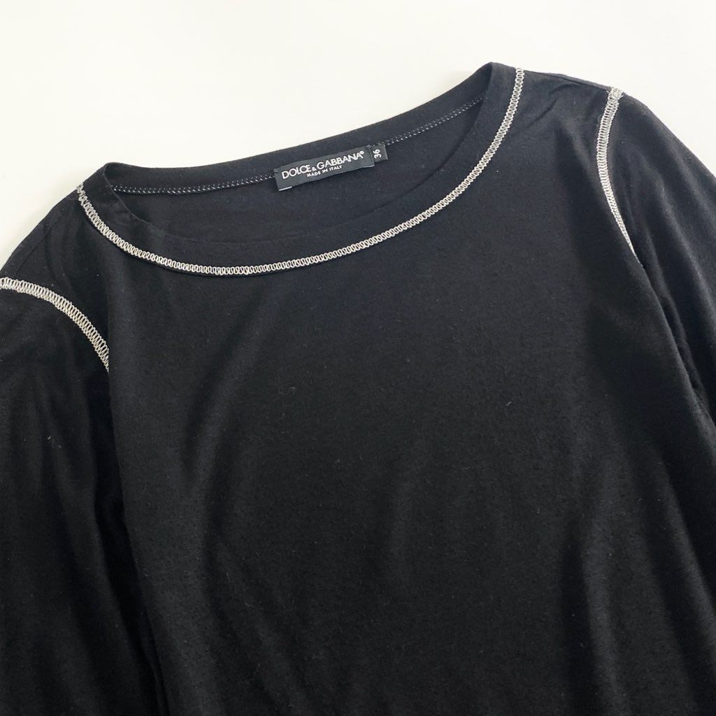 12d5 DOLCE&GABBANA ドルチェアンドガッバーナ イタリア製 ロゴプレート 長袖Tシャツ ロングスリーブカットソー 36 ブラック レーヨン シルク