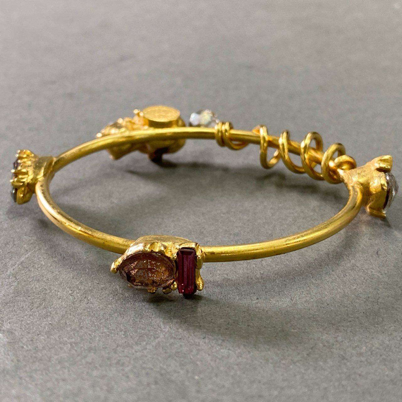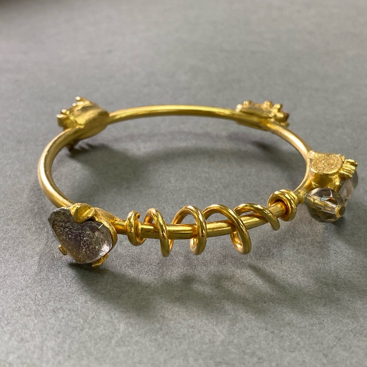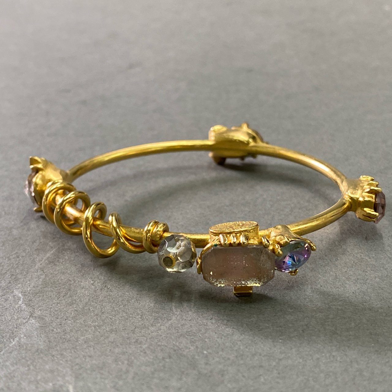 f9① CHRISTIAN LACROIX クリスチャンラクロワ ゴールド カラーストーン バングル ブレスレット レディース コスチームジュエリー