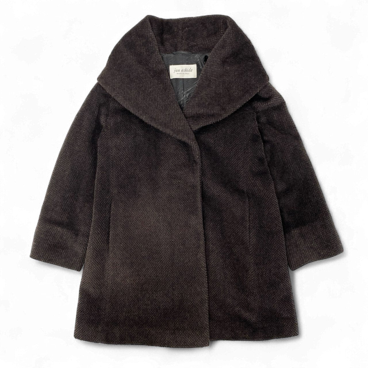 11k21 jun ashida ジュンアシダ イタリア製 フーデットコート ウールコート PIACENZA ベビーラマ レディース 女性用 アウター 42 ブラウン系u02t